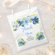 This beautiful and elegant bridal shower favour bag features watercolor baby blue and navy blue flowers with foliage. The text combines handwritten script and serif fonts for a stylish and modern look. This is perfect for a spring or summer rustic bridal shower.
