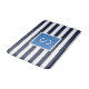 Custom monogrammed bath mat with a preppy stripe pattern in navy, blue and white colours. Personalise it with your monogram initial in a square frame. Use the design tools to choose any background colours, edit the text fonts and colours and add your own photos to create a one of a kind design to match any bathroom decor.