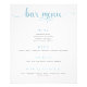The text on the menu is a charming combination of print and a fancy script that reads "bar menu" in an ornate style. This adds a touch of elegance and whimsy to the design, making it a perfect fit for a wedding with a celestial, astrology, or mystical theme.