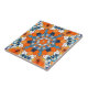 Enjoy this creative abstract symmetrical, mandala design with blue and orange colours.