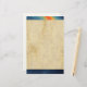 A top and bottom border with blue and orange abstract designs. The main body of the stationary is a texture with an antique vintage style paper.