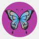 A beautiful blue and orange butterfly sticker on a pink background to use on gift wrapping, envelopes or for scrapbooking.