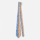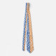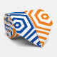 A unique and fun neck tie with a blue, orange and white hexagon pattern.