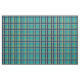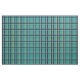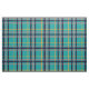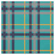 A rich turquoise base is crisscrossed by bands of deep navy blue, solid grey, and bright orange in this plaid that combines trendy colours and contrasts with a classic and cosy pattern.