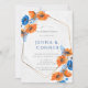 This design features blue and orange poppy flowers in light grey marble textures. Great for your wedding celebrations! Matching products are available.