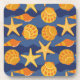 Blue And Orange Seashell Pattern Coaster