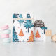 Blue and Orange Watercolor Christmas Trees Wrapping Paper