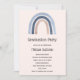 Graduation invitation with a cute and whimsical rainbow. Blue and peach colours.