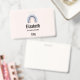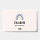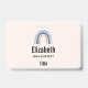 Name tag with a cute and whimsical rainbow. Blue and peach watercolors.