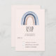 RSVP card with a cute and whimsical rainbow. Blue and peach colours.