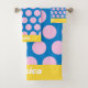 Blue and Pink Big Polka Dot Pattern Personalised Bath Towel Set