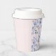 This paper cup design features blue chinoiserie floral pattern on a blush pink background.