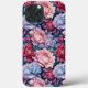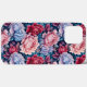 This iPhone case features roses and peonies in soft sky blue, delicate shell pink, and dark wine red, with teal and purple foliage in the background. Beautiful and luxurious with a vintage country look that’s still very modern.