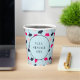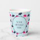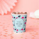 These pretty paper cups feature a pattern of ginkgo leaves in navy blue, light blush pink and a bright coral infused magenta set against a light blue background. There's plenty of room in the centre for adding your own custom message.