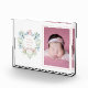This sweet baby photo cube announcement is a perfect way to announce the arrival of your new baby. The design features a monogram crest with a blue ribbon woven through. Introduce your baby with the details of your new baby's special day and a newborn photo.