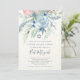 These stylish Bat Mitzvah invitations feature beautiful soft blue and pink watercolor peonies, with lots of leaves and accents. The background is made to look like plain watercolor paper. We have used art from LABFcreations.