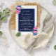 Personalised wedding invitations with pretty pink and blue watercolor flowers with white font. Elegant floral wedding theme.