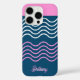 Make your phone stand out with this blue and pink wavy stripes pattern personalised iPhone 16 Pro case. Featuring a playful yet stylish design, this case adds a unique touch while protecting your device. Customise it with your name or initials for a personal flair, making it a great accessory or gift for any occasion.