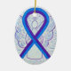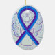 The guardian angel ornament features the painting of a blue and purple awareness ribbon angel. Blue and purple awareness ribbon means support for paediatrics stroke and rheumatoid arthritis awareness. Blue and purple awareness angel ribbon art can be customised with personalised messages to make great cause ornaments or pendants for fundraisers, awareness Christmas or holiday gifts, or other special events or occasions.
