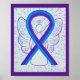 The guardian angel art poster print features the art of a blue and purple awareness ribbon angel painting. The blue and purple awareness ribbon means support for paediatrics stroke and rheumatoid arthritis awareness. The blue and purple awareness angel ribbon art print posters can be customised with personalised messages to make great cause images or pictures for fundraisers, awareness gifts, or other special events or occasions.