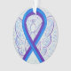 The guardian angel ornament features the painting of a blue and purple awareness ribbon angel. Blue and purple awareness ribbon means support for paediatrics stroke and rheumatoid arthritis awareness. Blue and purple awareness angel ribbon art can be customised with personalised messages to make great cause ornaments or pendants for fundraisers, awareness Christmas or holiday gifts, or other special events or occasions.