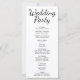 The text within the program is presented in a classic combination of black and grey, predominantly using a simple block font for clarity and readability. To infuse an element of grace and charm, key phrases such as "Welcome," "Ceremony," and "Wedding Party" are delicately rendered in a pretty decorative script font. These scripted elements add a touch of elegance and sophistication to the design, creating a harmonious balance between modernity and timeless charm.
