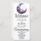 Introducing our Celestial Elegance Wedding Program, a captivating addition to your celestial-themed wedding celebration. This elegant program features a pristine white background, providing a striking contrast to the breathtaking and modern design of a crescent moon in shades of blue and purple. Wispy clouds in complementary hues of blue and purple frame the moon, creating a celestial masterpiece. Scattered throughout the design, you'll find a celestial constellation of white, yellow, and gold stars, adding a touch of cosmic brilliance to the overall aesthetic.