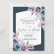 Make your engagement party unforgettable with our beautiful invitation, featuring stunning purple and blue flowers in the top right and bottom left corners. The centre of the invitation is a pristine white, which perfectly highlights the vibrant colours of the flowers. The invitation is complemented with a stylish dark blue-grey border, which adds a touch of sophistication to the design.