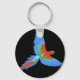 This unusual keychain, zip pull, shows a brightly colored flying Macaw against a black background. Perfect to keep your keys safe or as a beautiful accessory. A lovely gift.