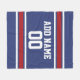 Blue and Red Jersey Stripes Custom Name Number Fleece Blanket