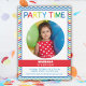 Fun and colourful invitation, with a ballon letters party time phrase, your favourite photo and a colourful background is the perfect combination for a kids party