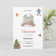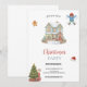 This cute and festive corporate Holiday office Party invitation is perfect for the holiday season. It features cartoon illustrations of a gingerbread man in front of his gingerbread house with candy canes, a Christmas tree sugar cookie, icing decorations, lollipop, gumdrops, and mint candy on top of a white and blue snowy and icy background. It's adorable, sweet, original, and unique; the perfect design to put your employees, colleagues, and business partners in the holiday spirit.