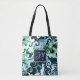 Personalised sage green, blue digital fluid art abstract tote bag.