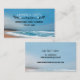 Whimsical beach business cards with blue water sea, sand, starfish, and tropical fish decor.