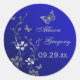 This 1.5" round royal blue and silver grey floral wedding favour sticker or envelope seal has butterflies and flowers on it that matches the wedding invitation shown below. If you require any changes, or want any other matching items, please email niteowlstudio@gmail.com.