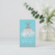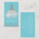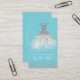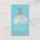 Elegant dress seamstress business card, with graphics of a white and silver glitter dress, against a robin egg blue background, with silver glitter looking accents. Personalise the text to suit your business needs. A lovely stand out card for your tailoring business.