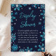 This elegant and glamourous display shower enclosure card features watercolor blue and silver faux glitter snowflakes and sparkles on a navy blue background. It is perfect for a winter or Christmas themed baby shower.