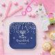 This elegant and sophisticated Hanukkah paper plate features beautiful silver string fairy lights with diamond sparkles, a menorah candle and the Star of David. The text combines handwritten script and serif fonts for a stylish and modern look. This is perfect for a Hanukkah party.