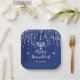 Blue and Silver String Lights Happy Hanukkah Paper Plate