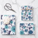 Blue And Teal Floral Pattern Wrapping Paper Sheet