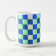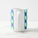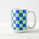 My original digital art on this mug features a vintage style abstract pattern of squares and spaces in blue and teal tones for a retro vibe and classic touch.