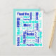 Send a unique postcard message with this blue and turquoise multilingual Thank You word cloud in a variety of typeface styles. Click "Customise" to add text to the back or leave it blank for a handwritten message. In customise you can select different background colours for the front and back.