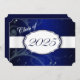 Blue and white graduation invitation with light and dark blue floral and a white ribbon going across showing the year of graduation. The back of the card is blue with white font for people to fill in the graduation announcements.