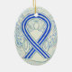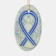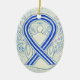 The guardian angel ornament features the painting of a blue and white awareness ribbon angel. Blue and white awareness ribbon means support for Amyotrophic Lateral Sclerosis (ALS). Blue and white awareness angel ribbon art can be customised with personalised messages to make great cause ornaments or pendants for fundraisers, awareness Christmas or holiday gifts, or other special events or occasions.