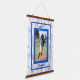 Personalise the name and photo on this baseball themed wall tapestry printed with a digital photo frame of red and white baseballs. Accented with blue colours. Also available in red accents. Photo credit: Image by Keith Johnston by Pixabay.
