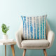 A beautiful scene of white and turquoise birch trees as a background on these throw pillows