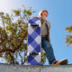 Blue and White Modern Geometric Large Check Gingham Plaid with Twill and Threads Texture Effect Seamless Repeat Pattern Design