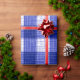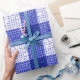 Blue and White Bold Checkered Plaid Design Wrapping Paper