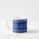 The original artwork by ZoeSPEAK on this breezy looking Espresso Cup is a pattern with a mood of the seaside. Done in marine blue and white, the cup is covered in bands of shapes which look like water droplets in a zigzag pattern. A casual chic look great for a cottage at the beach, or anywhere you want the same mood.