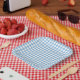Blue and White Chequered Diamond Pattern Paper Plates